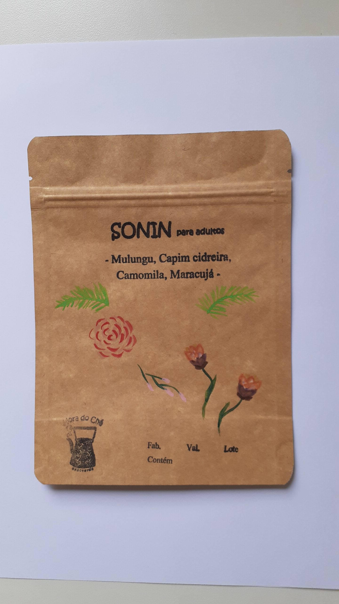Blend elaborado com plantas que favorecem o sono, acalma, diminuem o nervosismo e a ansiedade. Composto por maracujá(Passiflora), camomila(Matricaria recutita) e capim cidreira (Cymbopogum citratus), e mulungu (Erhytrina verum) A infusão deve ser preparada despejando o conteúdo de um envelope (2,5g) das ervas secas em 150ml d de água aquecida á 80-90 o.C, durante 5 minutos. Recomenda-se uso á noite, mas em casos de ansiedade pode ser tomado pela manhã e á noite, não mais que 7 dias consecutivos.